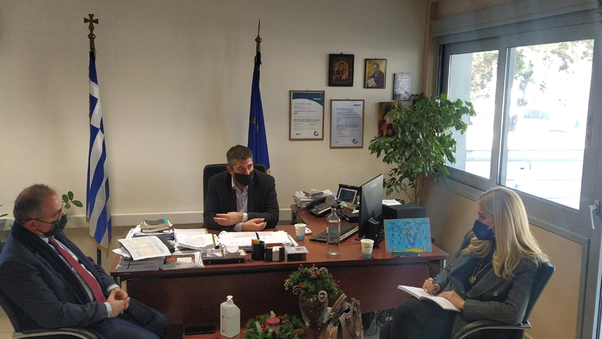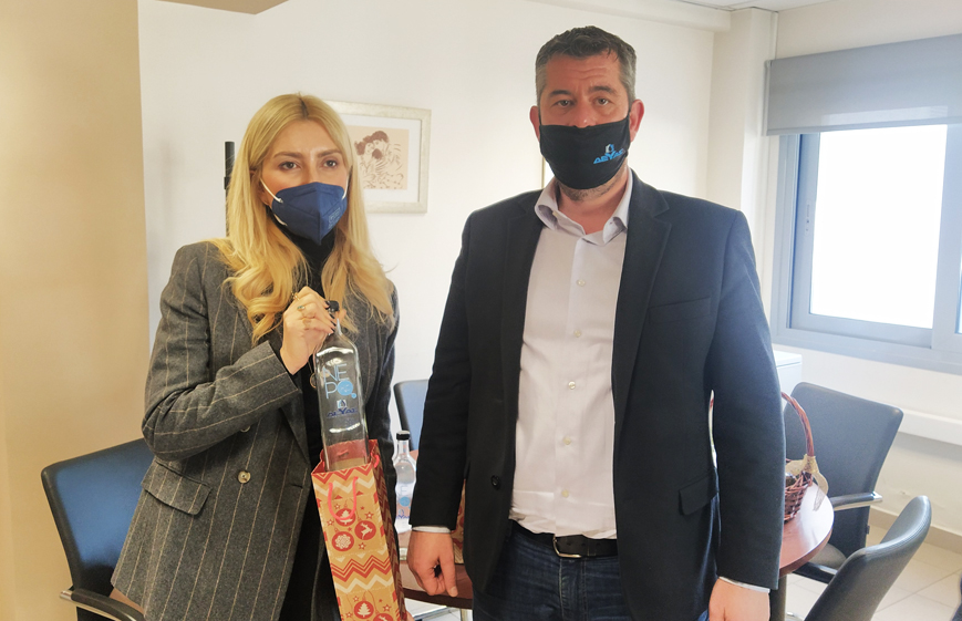 Επίσκεψη στα γραφεία της ΔΕΥΑΣ πραγματοποίησε σήμερα, Τρίτη 4 Ιανουαρίου 2022, η Βουλευτής Σερρών και μέχρι πρότινος Υφυπουργό Αγροτικής Ανάπτυξης και σήμερα Κοινοβουλευτικής Εκπρόσωπος της Ν.Δ. κ. Φωτεινή Αραμπατζή. Τη βουλευτή υποδέχθηκαν ο Πρόεδρος κ. Αλέξανδρος Χαλκιόπουλος και ο Αντιπροέδρος κ. Γερμανός Καμελίδης.