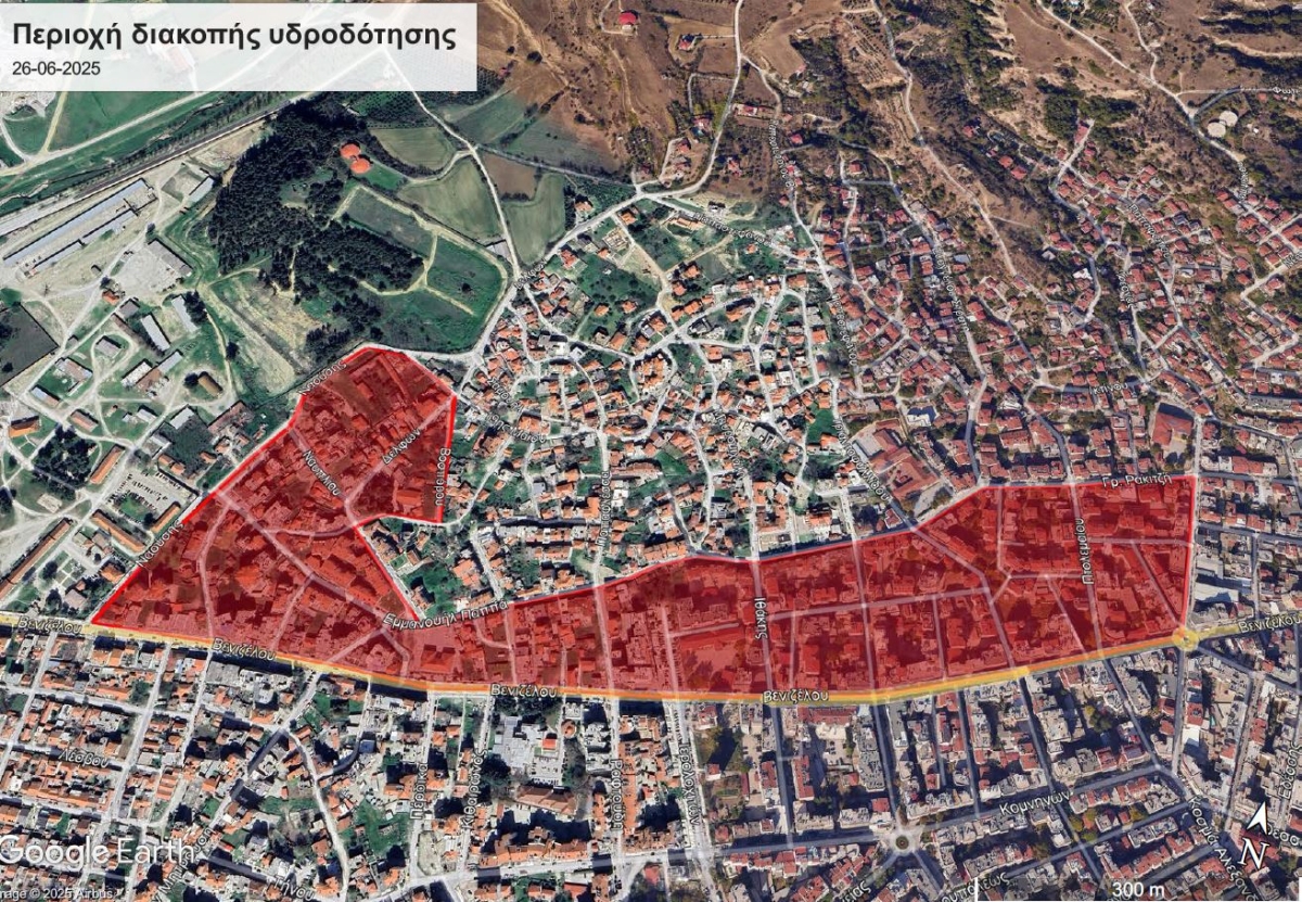 Λόγω αναγκαίας επισκευής βλάβης στο πρωτεύον δίκτυο ύδρευσης (στη συμβολή Παπαδιαμάντη & Δημοσθένους), την Πέμπτη 26 Ιουνίου 2025 και ώρες 08:30 – 12:30, θα υπάρξει διακοπή νερού στις περιοχές που περικλείονται από τις οδούς: