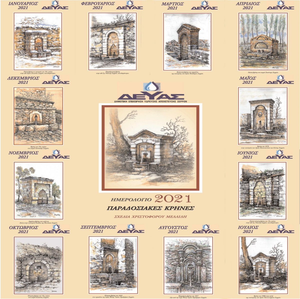 Αφιερωμένο στις Παραδοσιακές Κρήνες των Σερρών είναι το ημερολόγιο της ΔΕΥΑΣ για το 2021, που επιμελήθηκε ο καταξιωμένος ζωγράφος Χριστόφορος Μελλίδης.